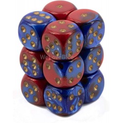 Chessex Gemini 16mm D6 (12 Dice) - Blue-Red/Gold