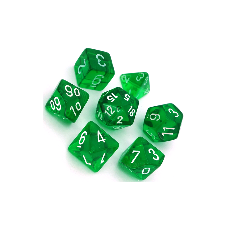 Translucent 7 dice Green/White