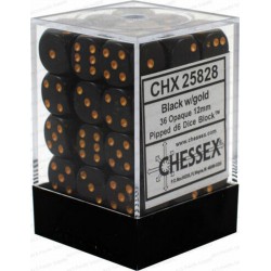 Chessex Opaque 12mm D6 (36 Dice) - Black/Gold